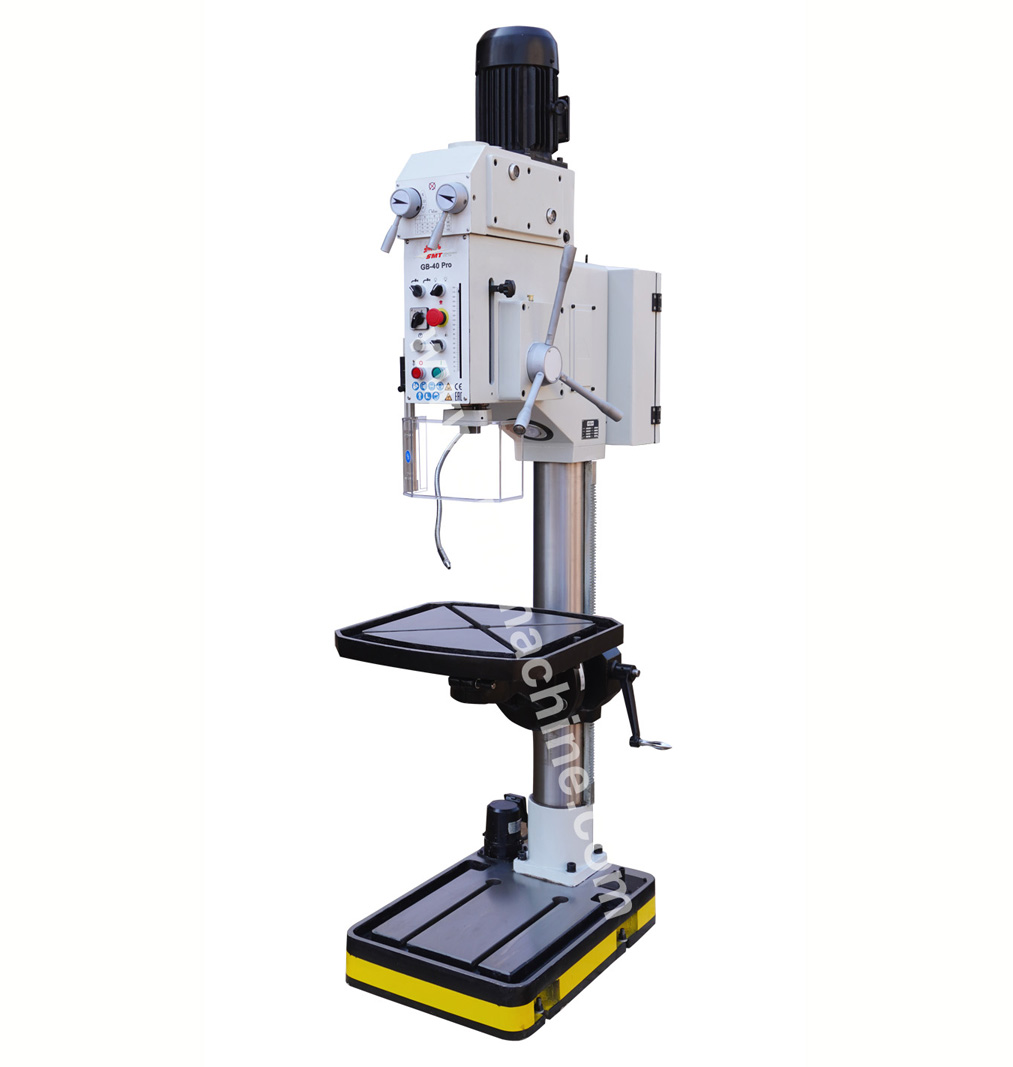 Feature: · Industrial gear drive column drilling machine · Lubrication gear head with quite operation · Adjustable drill depth stop with scale,reading at the front · Working table rotate 360° and swivels ±45° · Rigid construction of table and base · Automatic tool release device · Powerful 2-speed motor · Electromagnetic spindle sleeve feed,tapping device · 24V controlling wiring · Rigid constructuion of base with coolant tank · Equip with safety spindle guard, LED work lamp, coolant system
