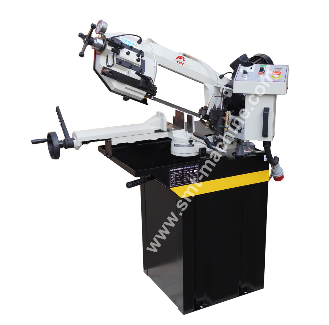 Feature: · The mitre saw is a compact and quality saw for repair work shop · Worm gear drive provide high torque · Cutting angle settings 0° - 60° · Workpiece fence for economic work · Copper brush to clear the chips · Automatic shut-down at cutting end · Guage for blade tension as standard · Hydraulic cylinder for saw body to cut automaticly · Precise and stable saw blade guides ensure high angular accuracy · Equipped with coolant system, stand